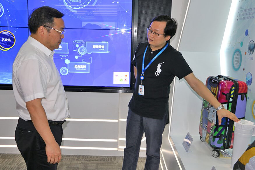 hth.com华体会智能总裁龙飞为陈小华区长介绍公司产品